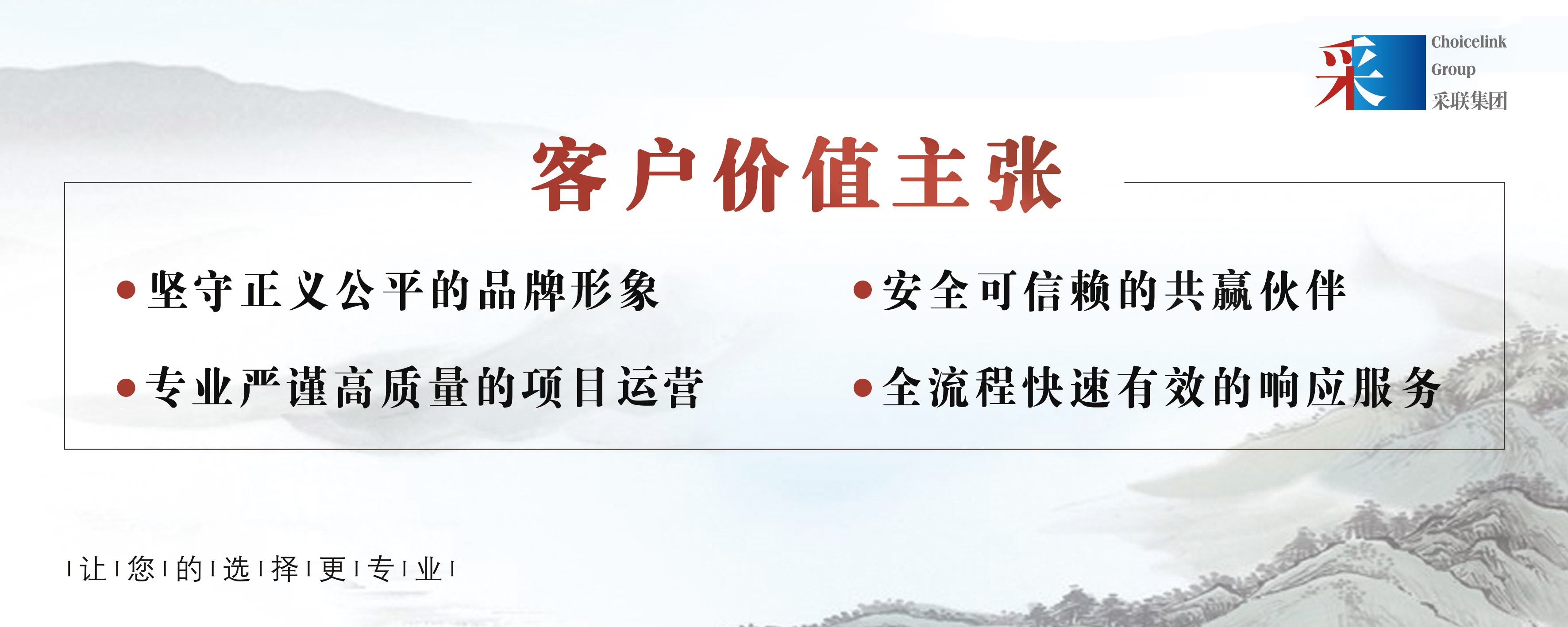 采聯集團致力于為廣大客戶提供采購全流程專業服務,堅守“守正出奇”的核心價值觀,以公平公正為原則,不斷優化服務、堅持創新發展。依托多元化、專業化的服務,不斷向“締造最具創新力的采購服務品牌,構筑采購領域最專業的資源交互平臺”的遠大愿景邁進。