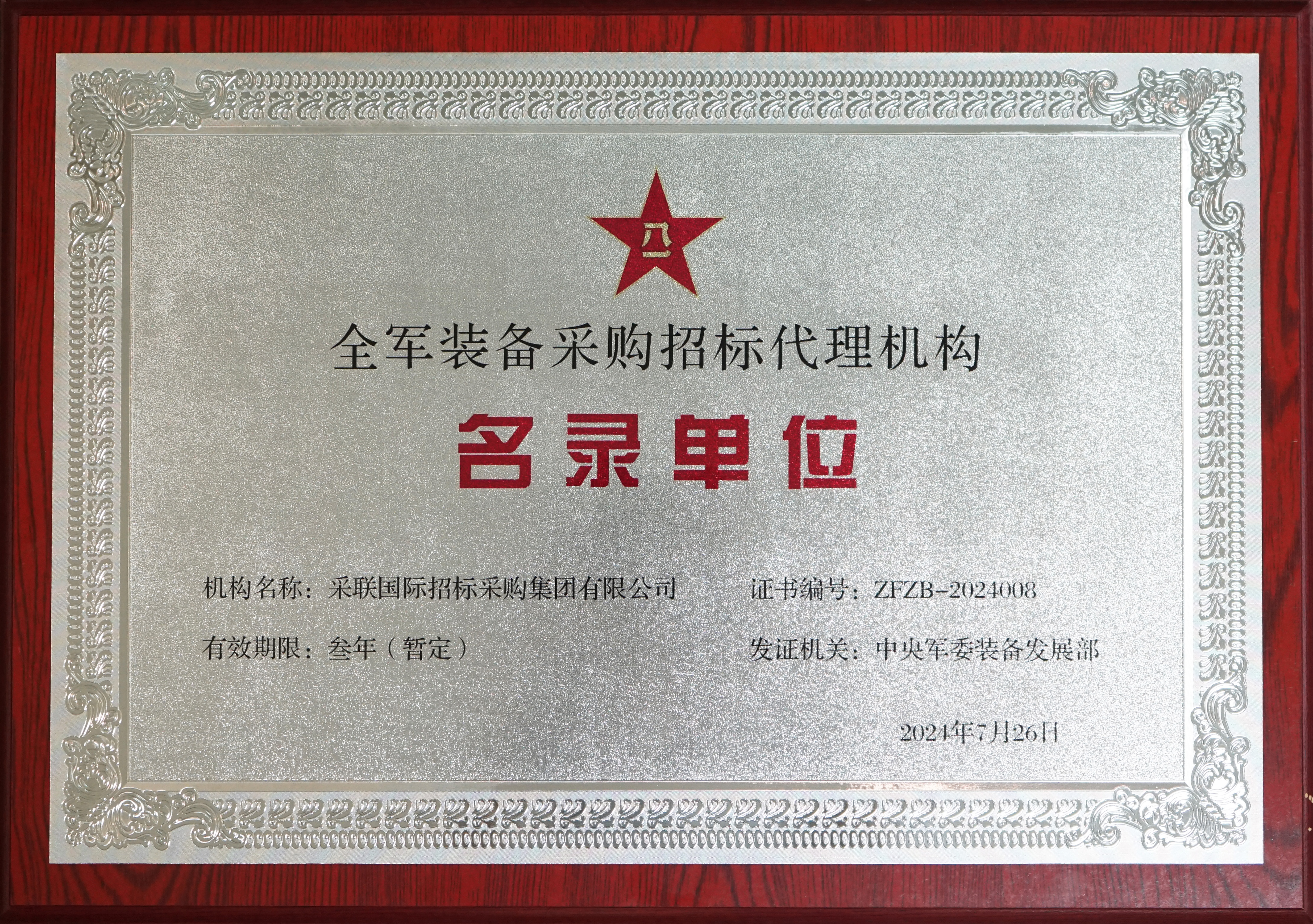 ● 再度入圍全軍裝備采購招標代理服務機構。