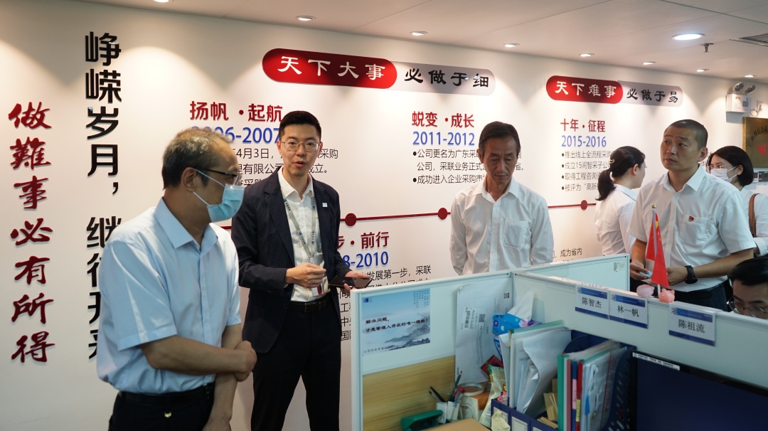 2020年9月2日,交通銀行廣東省分行鐘達(dá)堅(jiān)副行長(zhǎng)一行蒞臨我司總部考察交流。在采聯(lián)科技CEO洪志偉、廣州團(tuán)隊(duì)總經(jīng)理李嬋娟的陪同下,鐘副行長(zhǎng)一行參觀了采聯(lián)總部各部門辦公區(qū)域、企業(yè)文化陳列區(qū)域、開評(píng)標(biāo)會(huì)議中心等。