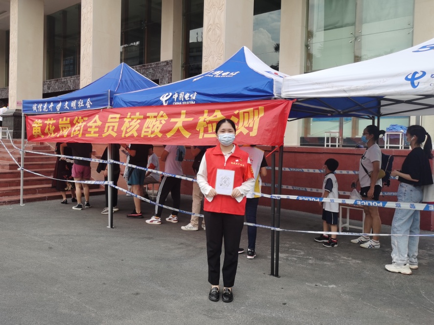 時間就是命令,一名黨員就是一面旗幟。采聯集團黨支部書記黃莉莉帶頭做表率,沖鋒在前,頂著烈日在核酸檢測現場指導社區居民掃描二維碼,填報資料。