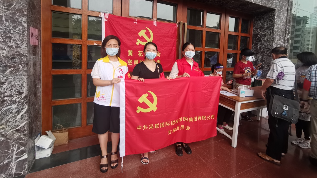 2021年6月25日,黃花崗社區黨委組織開展第四次大規模人員核酸檢測,由于時間緊迫,需要大量的社區黨員志愿者前往協助。采聯集團黨支部收到通知后,第一時間趕往現場支持工作。