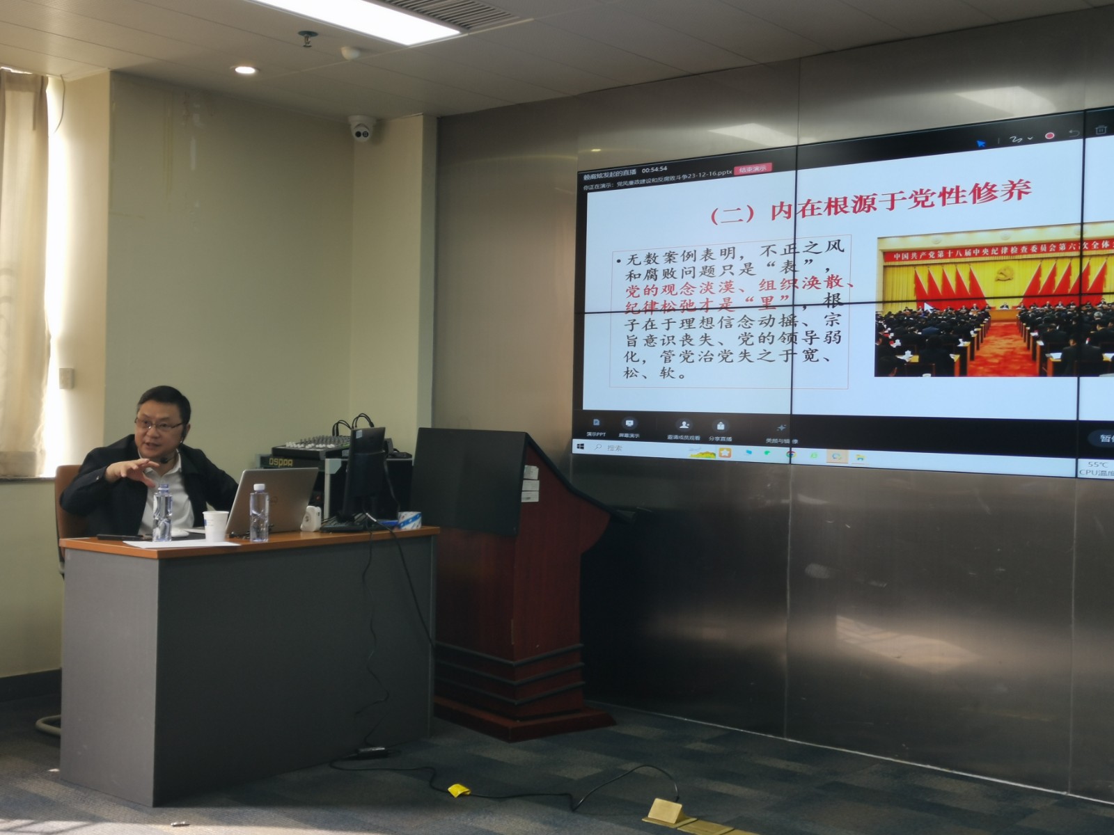 何良蘇教授以“深入推進黨風廉政建設與反腐敗斗爭”為主題,圍繞“不正之風和腐敗是黨面臨的嚴重威脅”、“不正之風和腐敗問題生成的主要根源”、“推進黨風廉政建設和反腐敗斗爭思路”三個方面,為大家進行了講授和輔導。